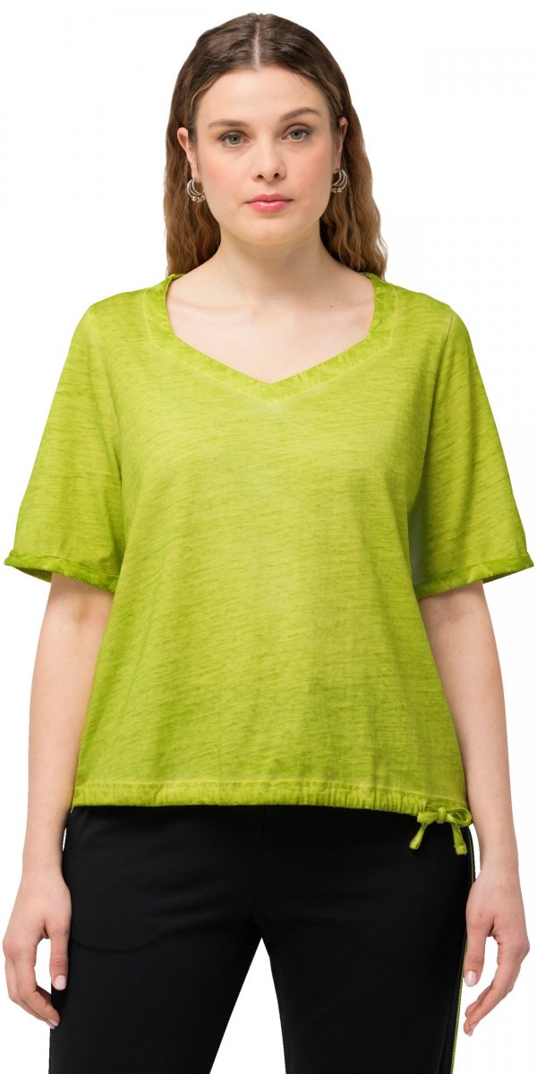 Guide des tailles - Ulla Popken Cold Dyed Sweetheart Neckline Short Sleeve Tee Apple Green