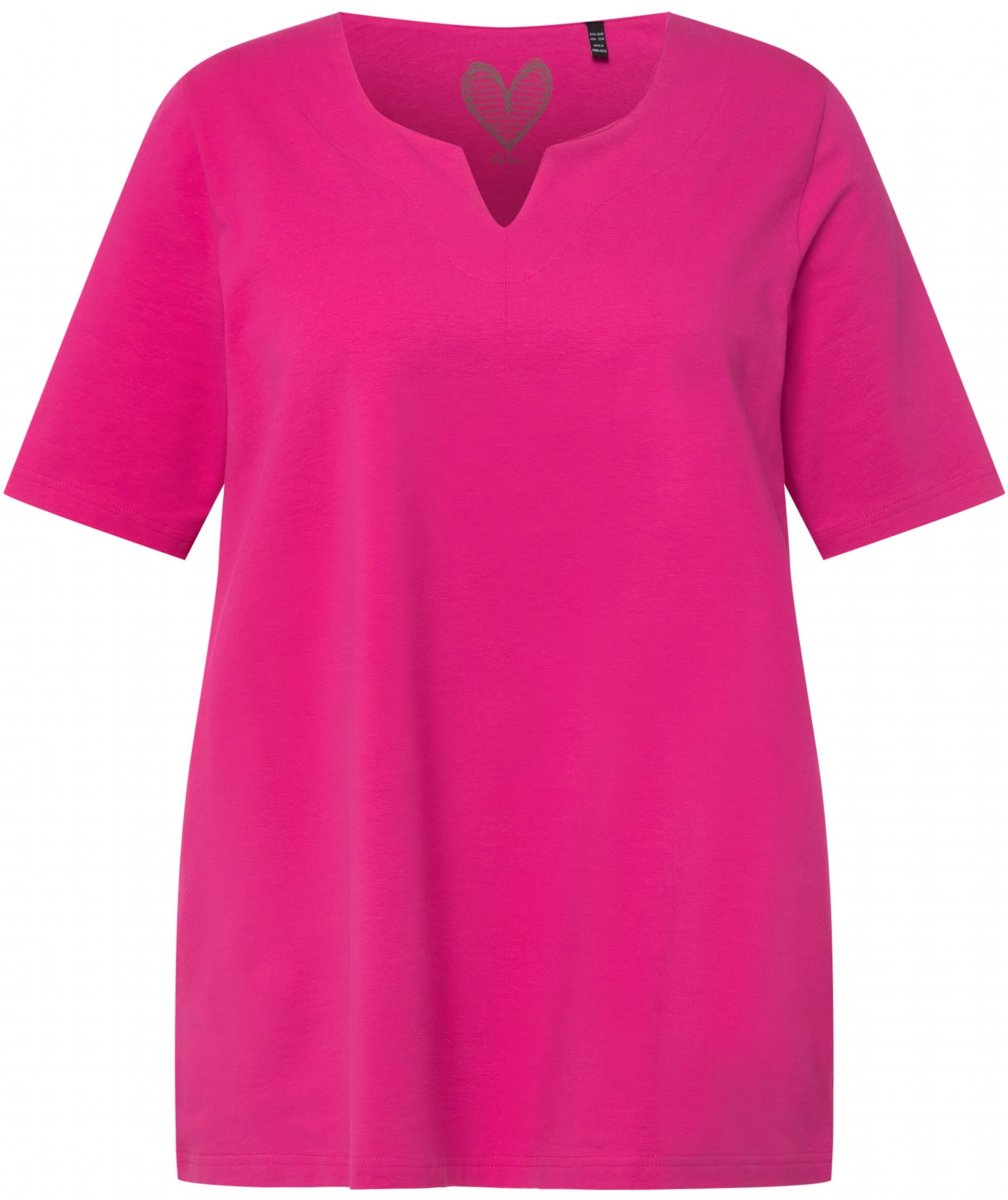 Ulla Popken Essential Notch Neck Stretch Tee Fuchsia Pink