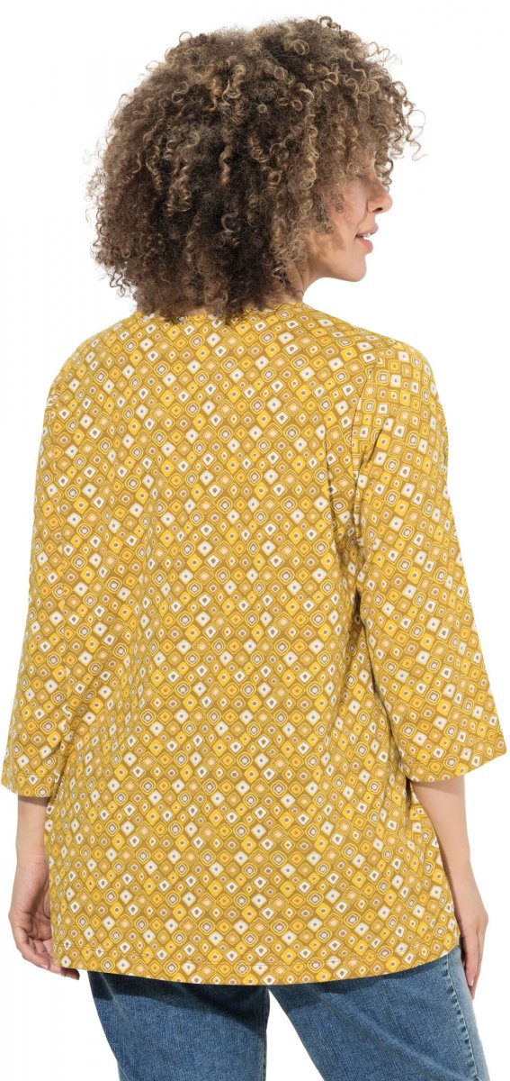 Ulla Popken Graphic Print Pleated 3/4 Sleeve Tee Mocha Brown