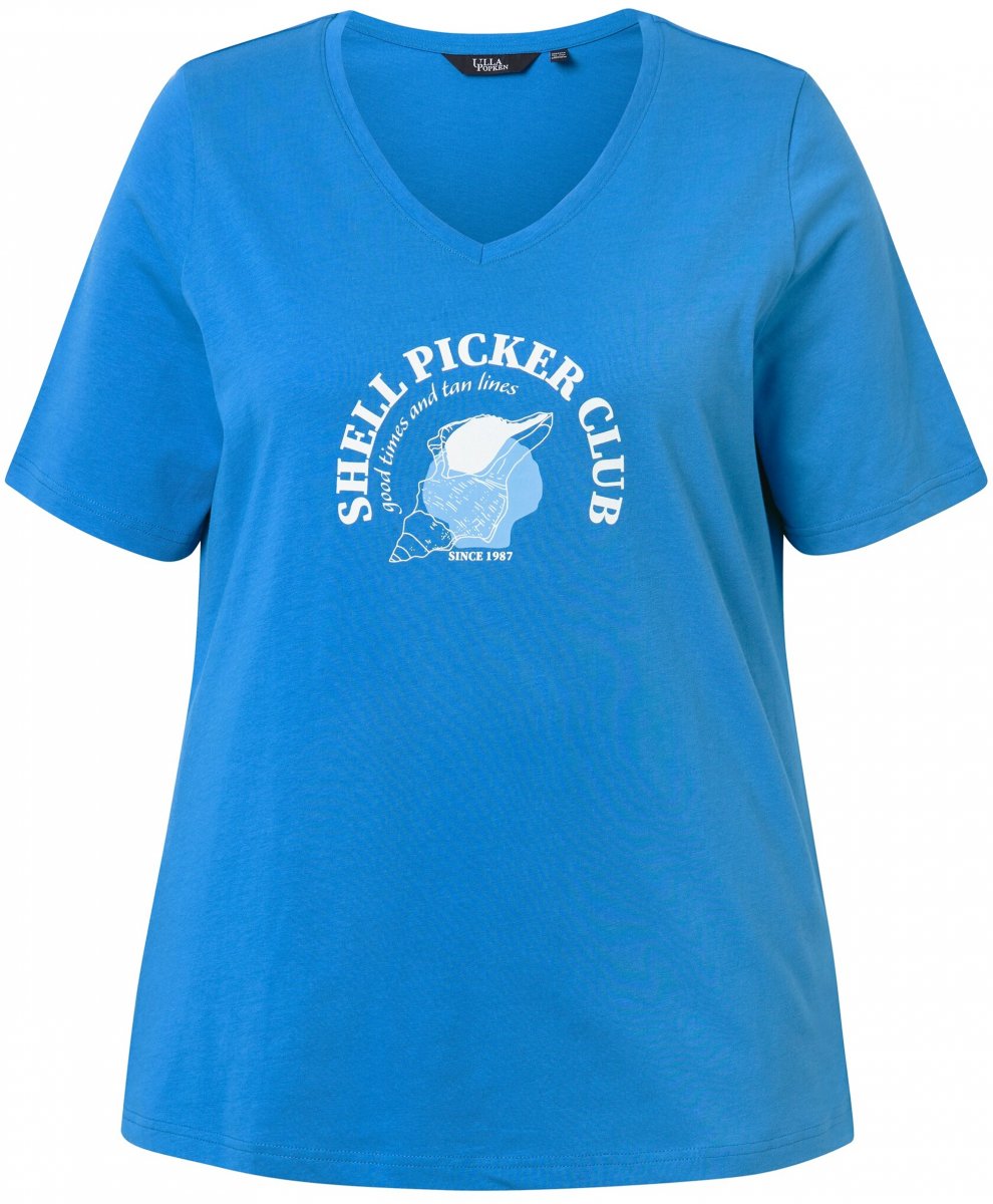 Guide des tailles - Ulla Popken Shell Picker Club Short Sleeve Graphic Tee Teal Blue