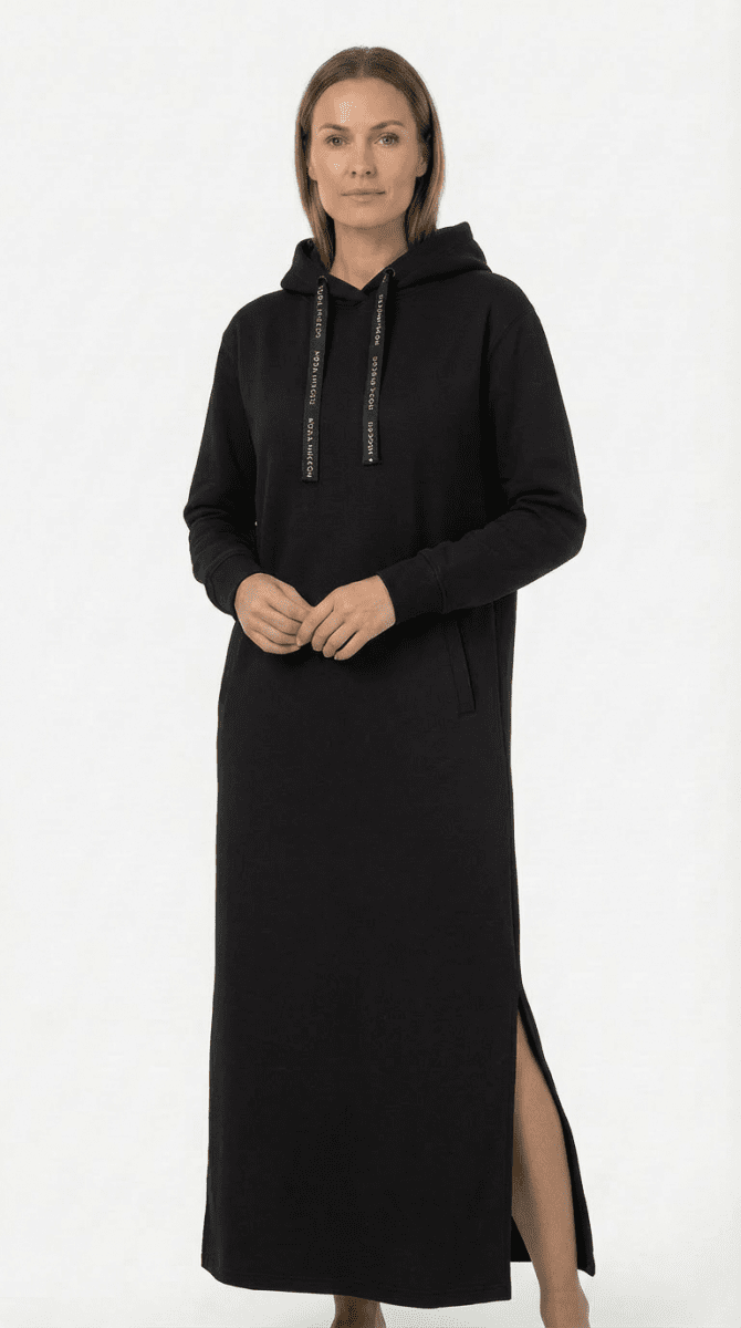 Sweat-shirt long femmeDisponible en tailles S-XXLDe la marque Nora MikkenFabriqué en 60% coton, 40% polyesterMaxiCouleur noireLe sweat à capuche a 2 poches sur le devantCliquez ici pour afficher le guide des tailles
