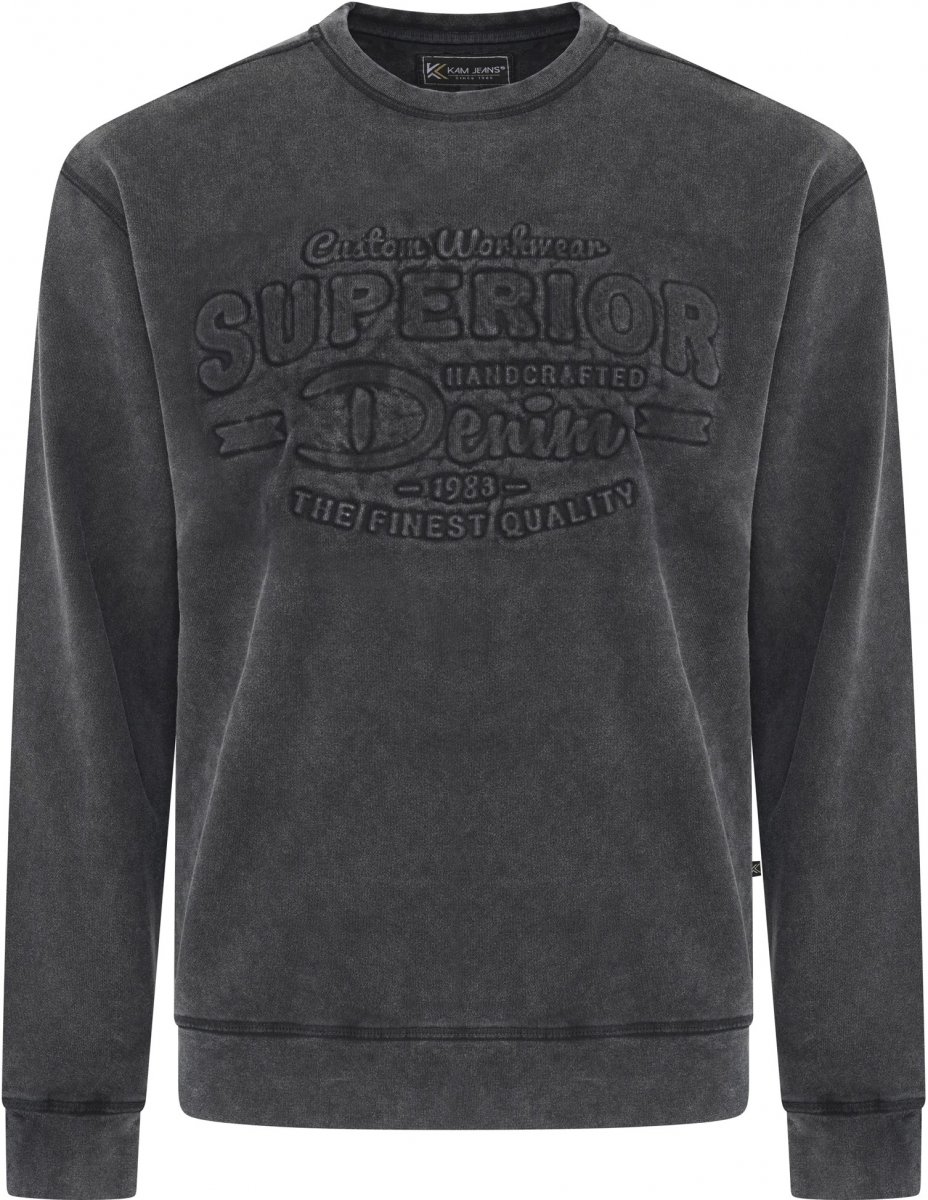Guide des tailles - Kam Jeans 7065 Crew Neck Washed Embossed Sweatshirt Black TALL SIZES